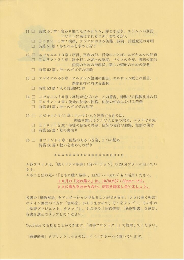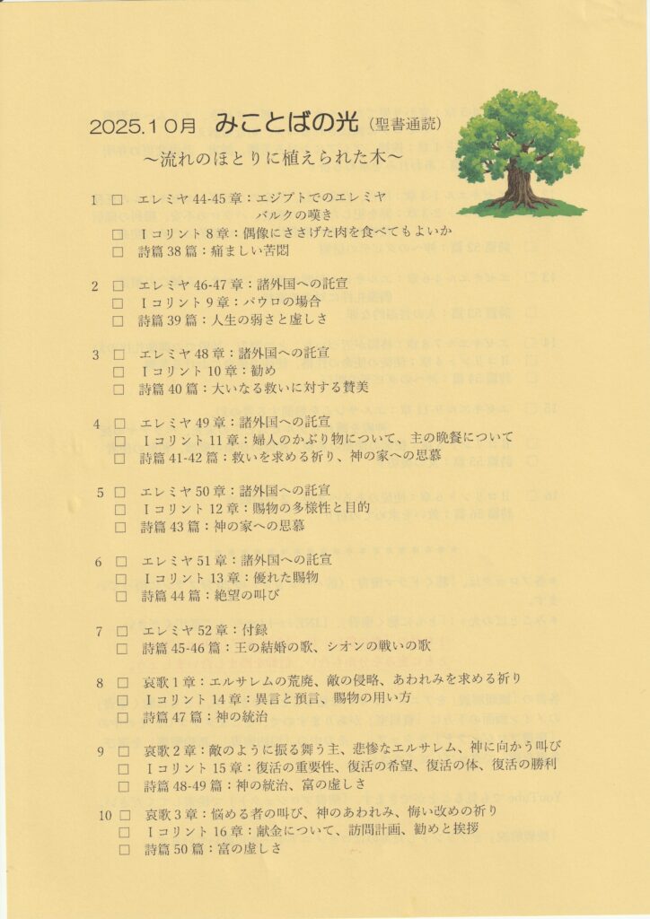 すごしやすい季節になりました。ぜひ主の平安の中で聖書をお読みください。